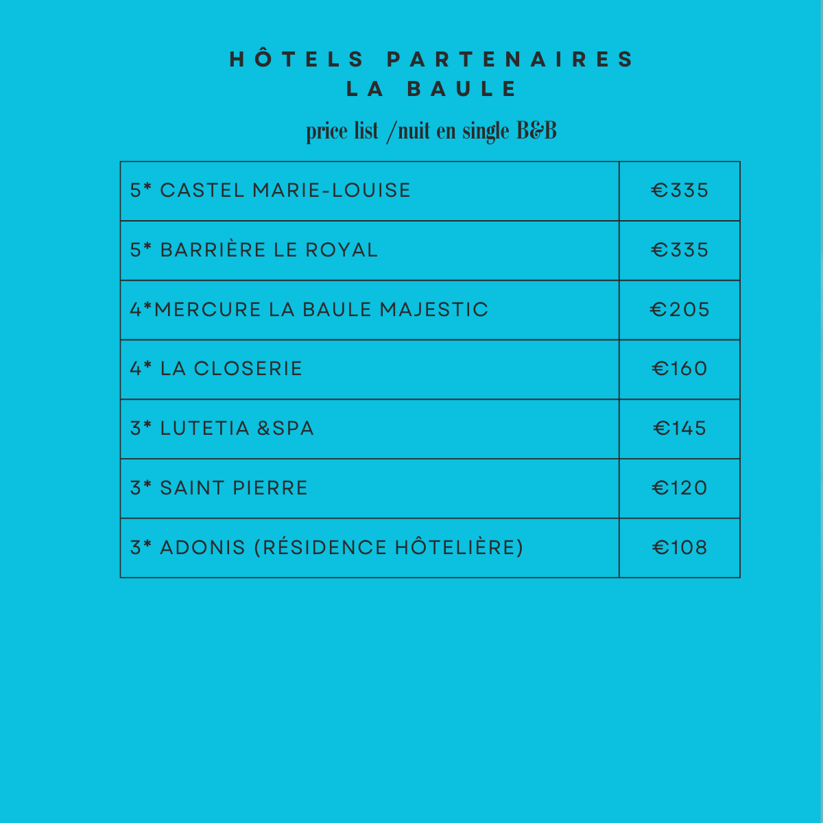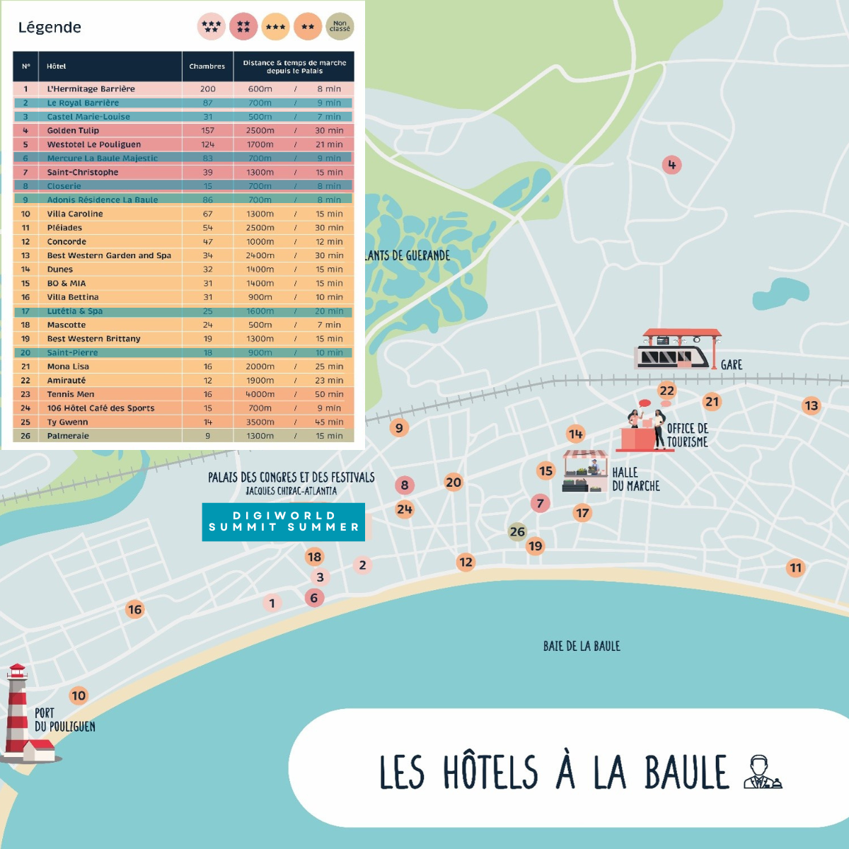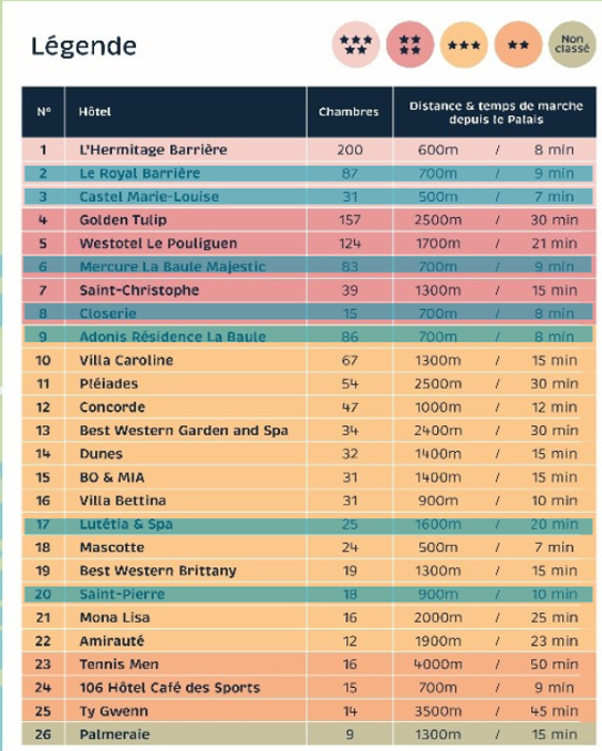 Ci-dessous la liste et l'implantation des hôtels* dans lesquels nous avons pu poser des options jusqu'au 15 janvier prochain.